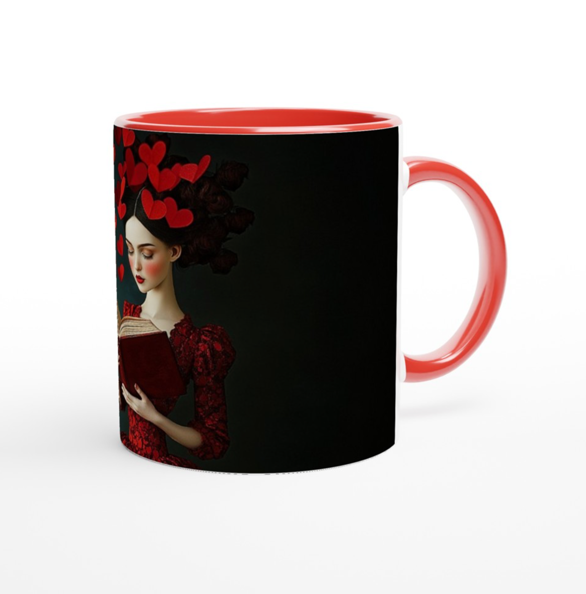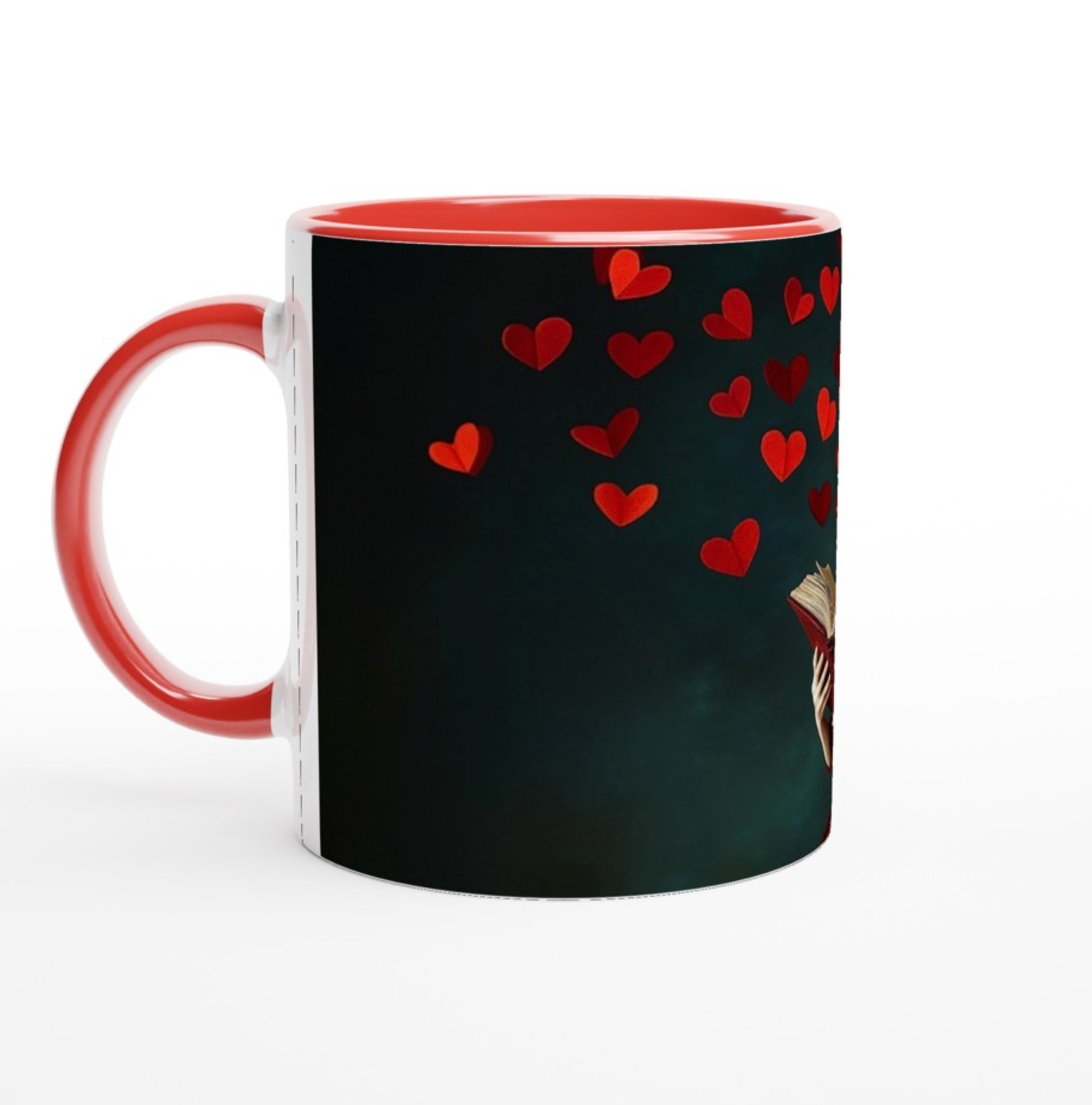 This beautiful ceramic mug is perfect for any event of the day. Your morning coffee, a hot chocolate, or any other hot beverage you enjoy. The mug is glossy white with a colored rim, inside, and handle. The print retains its quality and luster when used in both microwaves and the dishwasher.