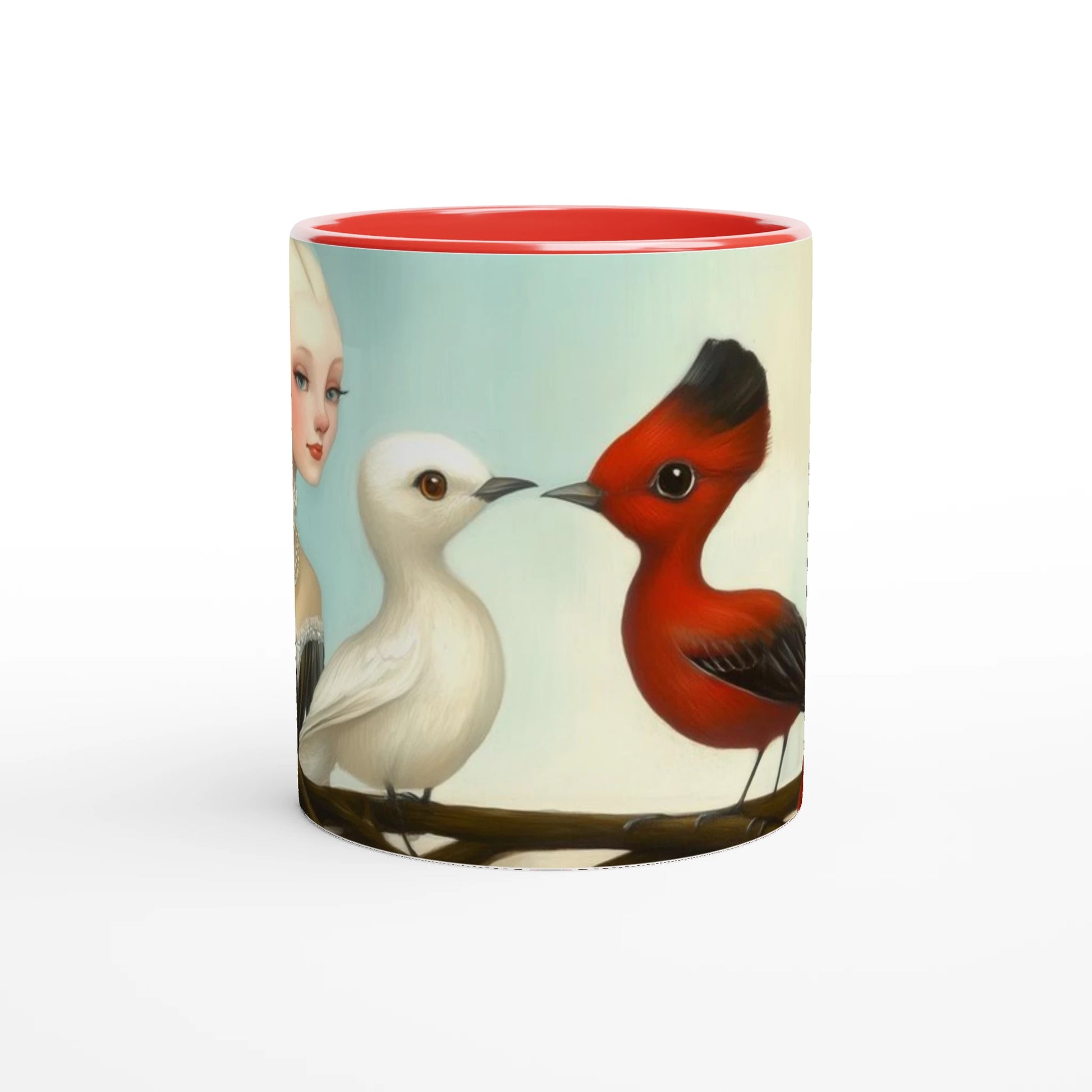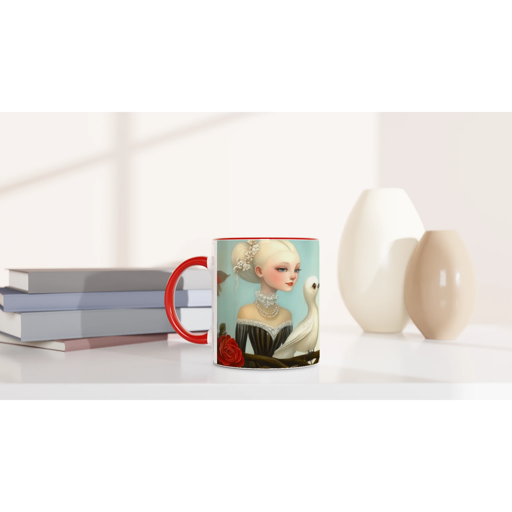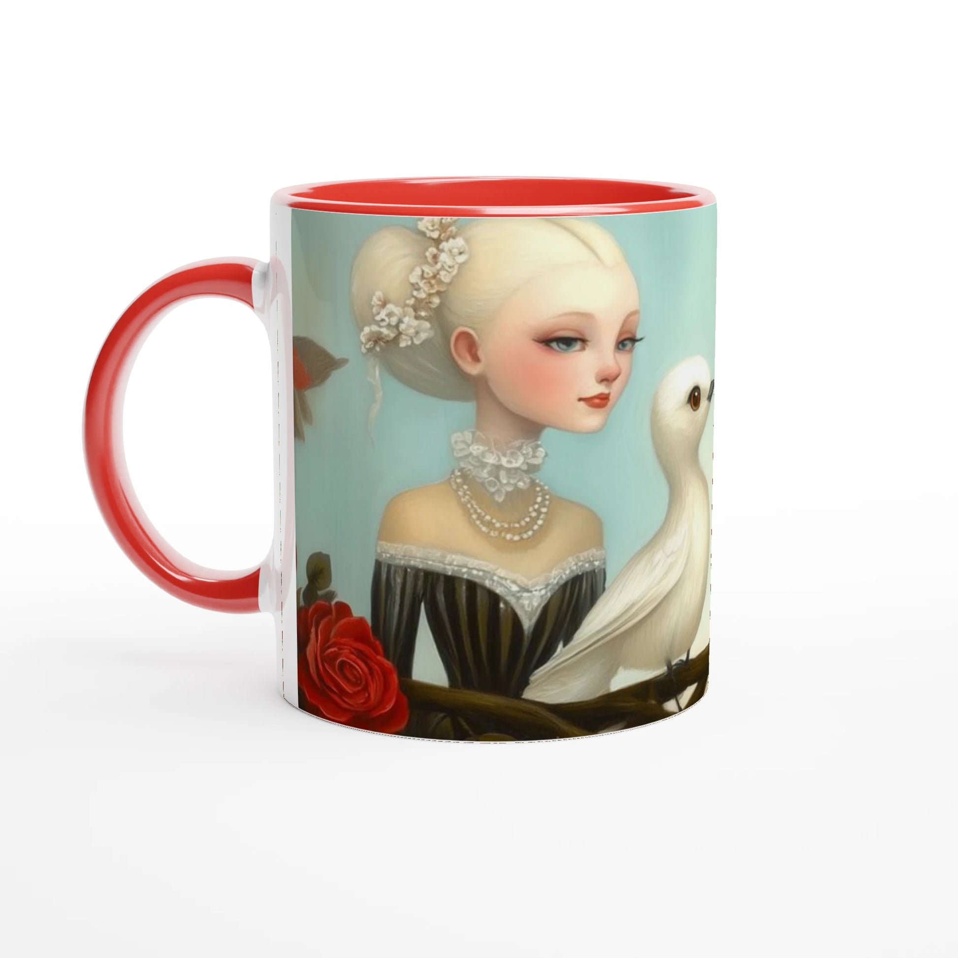 Enhance your beverage experience with our exquisite Ceramic Coffee Mug, featuring a stunning painting of a lady with birds. This unique design adds a touch of elegance to your drinkware collection, making it perfect for any occasion—be it your morning coffee, a comforting hot chocolate, or your favorite herbal tea.