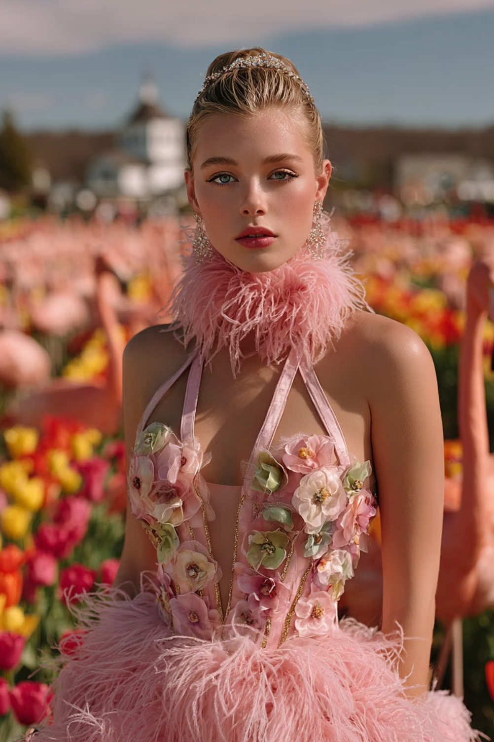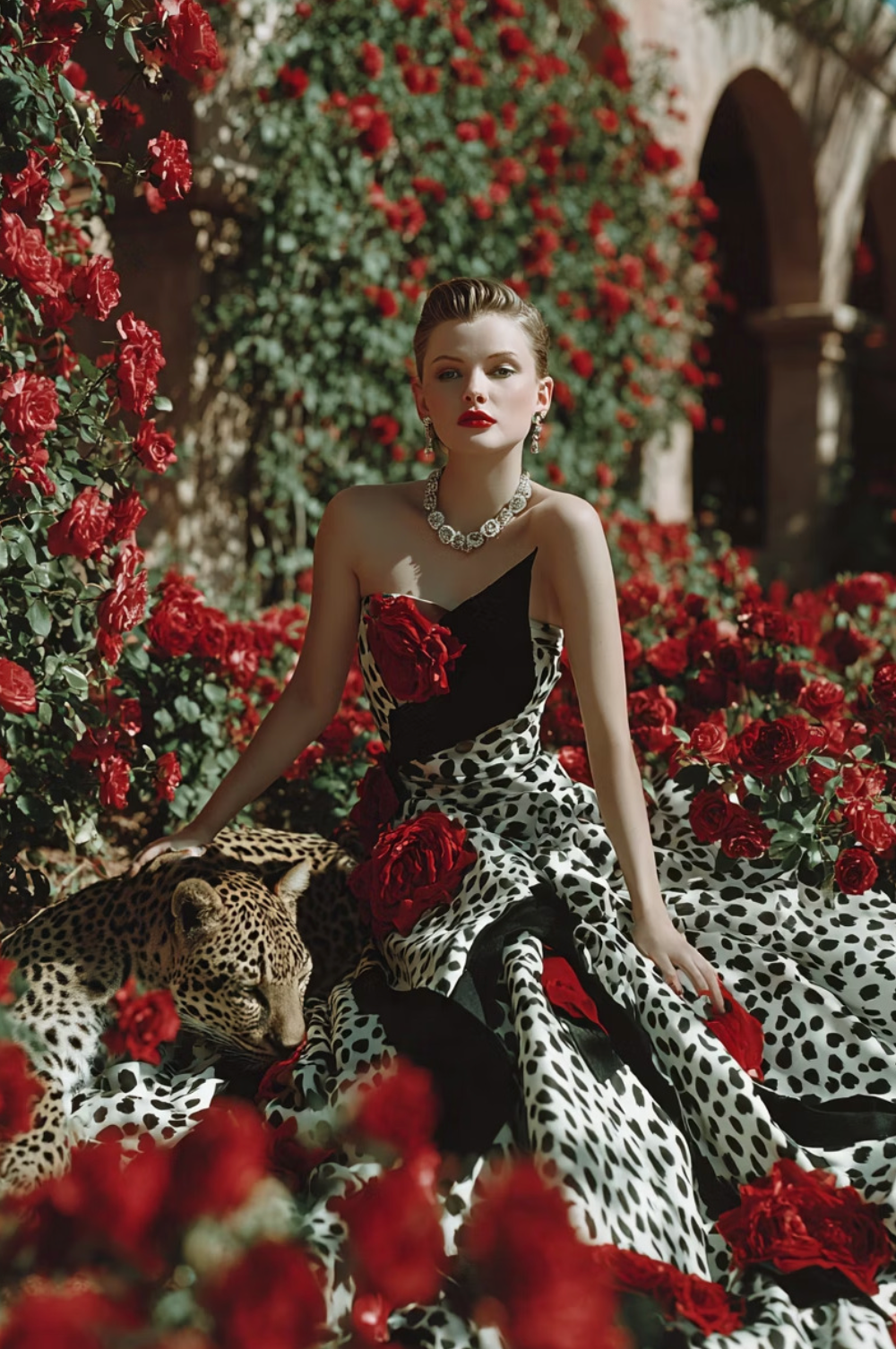 🌸 Animals in Gardens – lush floral settings, enchanted courtyards, and whimsical couture inspired by nature.