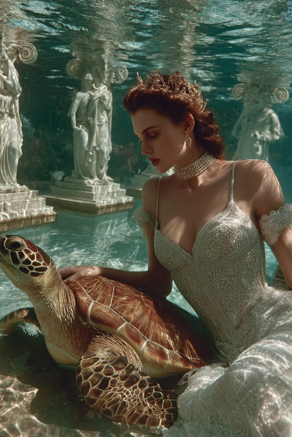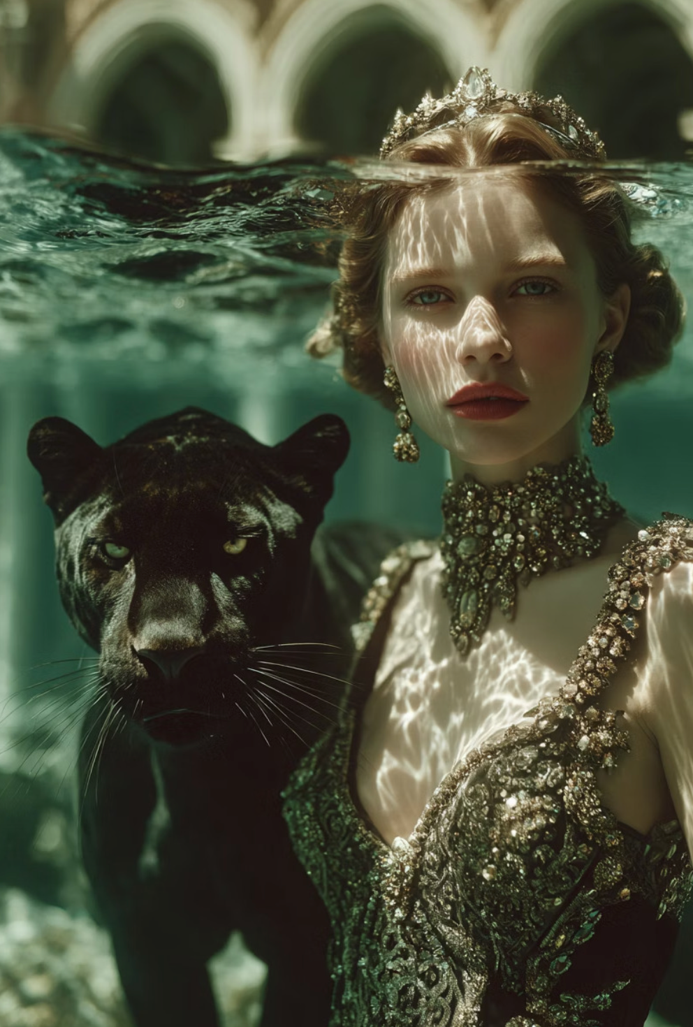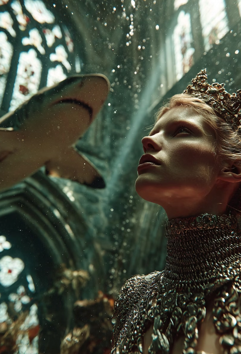 🌊 Animals Underwater – surreal Atlantis-inspired backdrops where couture and marine life merge in dazzling, dreamlike compositions.