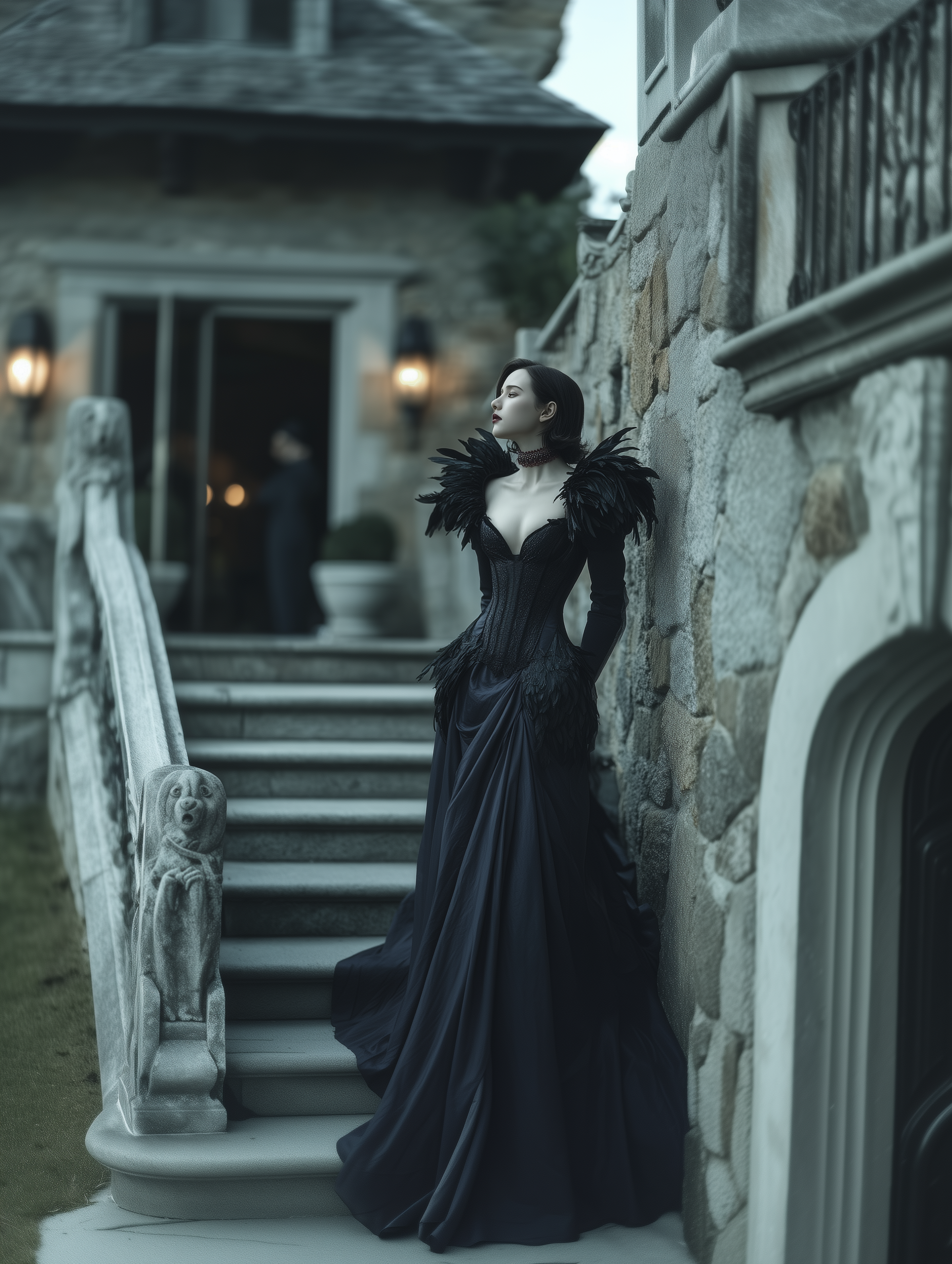 Each prompt is designed to generate full-body, editorial-quality images in MidJourney — combining haute couture fashion with gothic storytelling. Perfect for artists, designers, and creators looking to build darkly luxurious worlds.