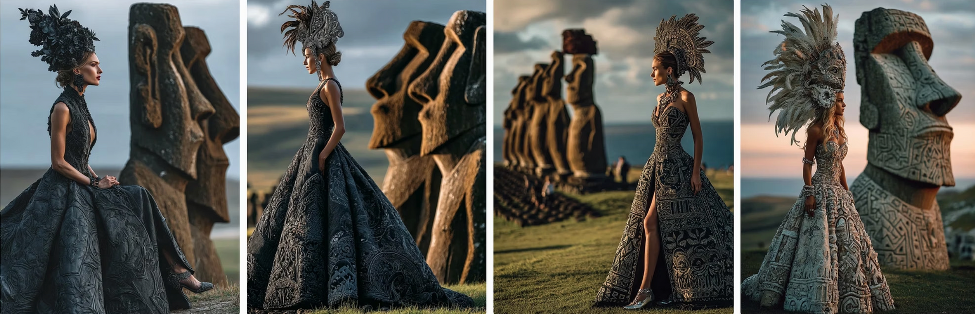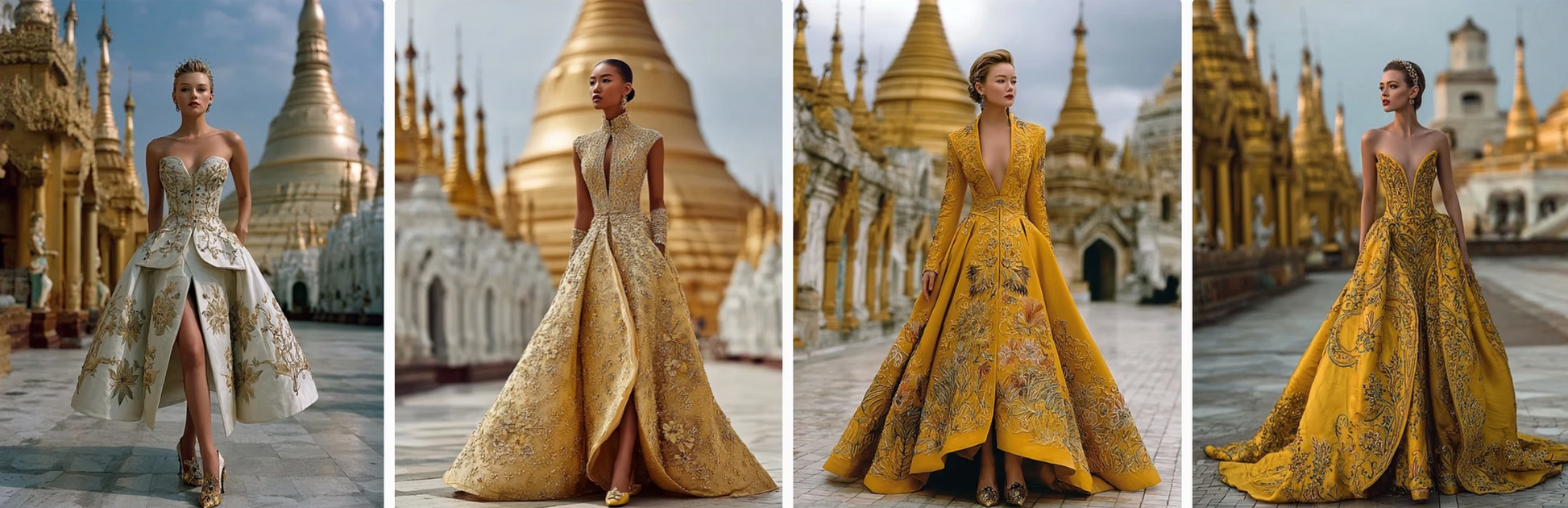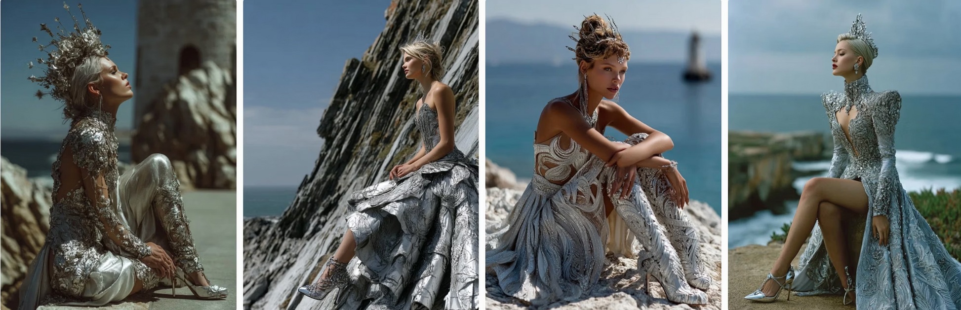 This digital collection of 60 couture prompts is inspired by architectural marvels—from brutalist monoliths to baroque curves, glass towers to ancient temples. Crafted for use with AI image generators like Midjourney, DALL·E, and others, these prompts blend the lines between structural design and high fashion.