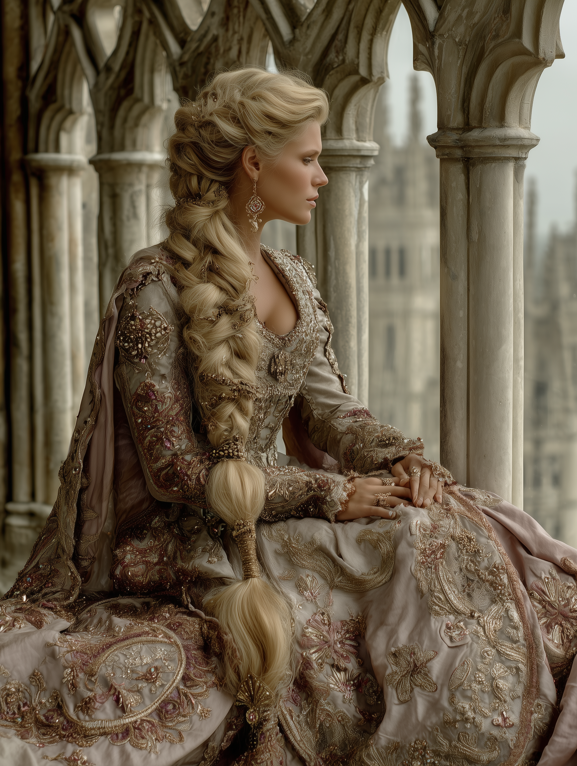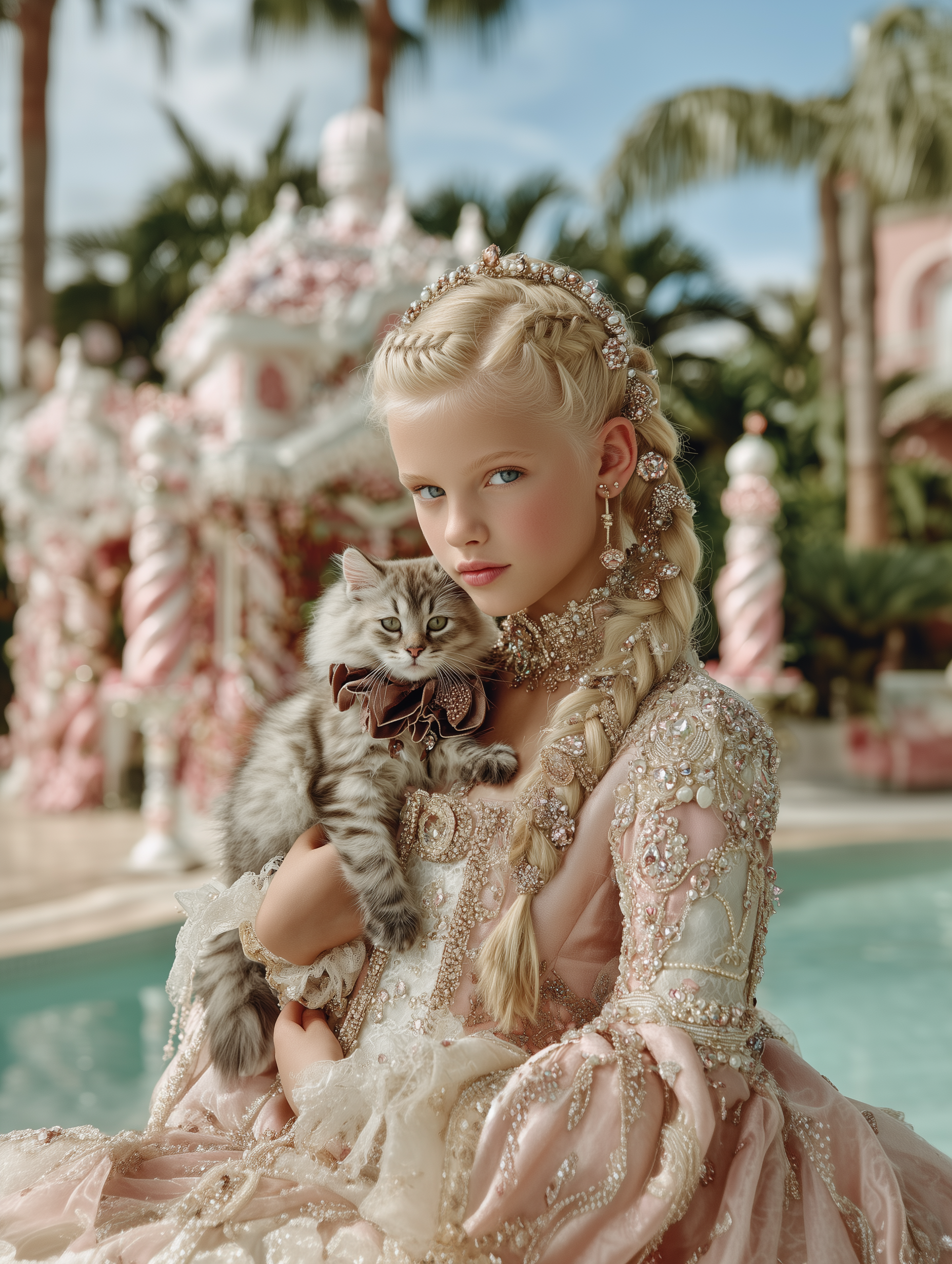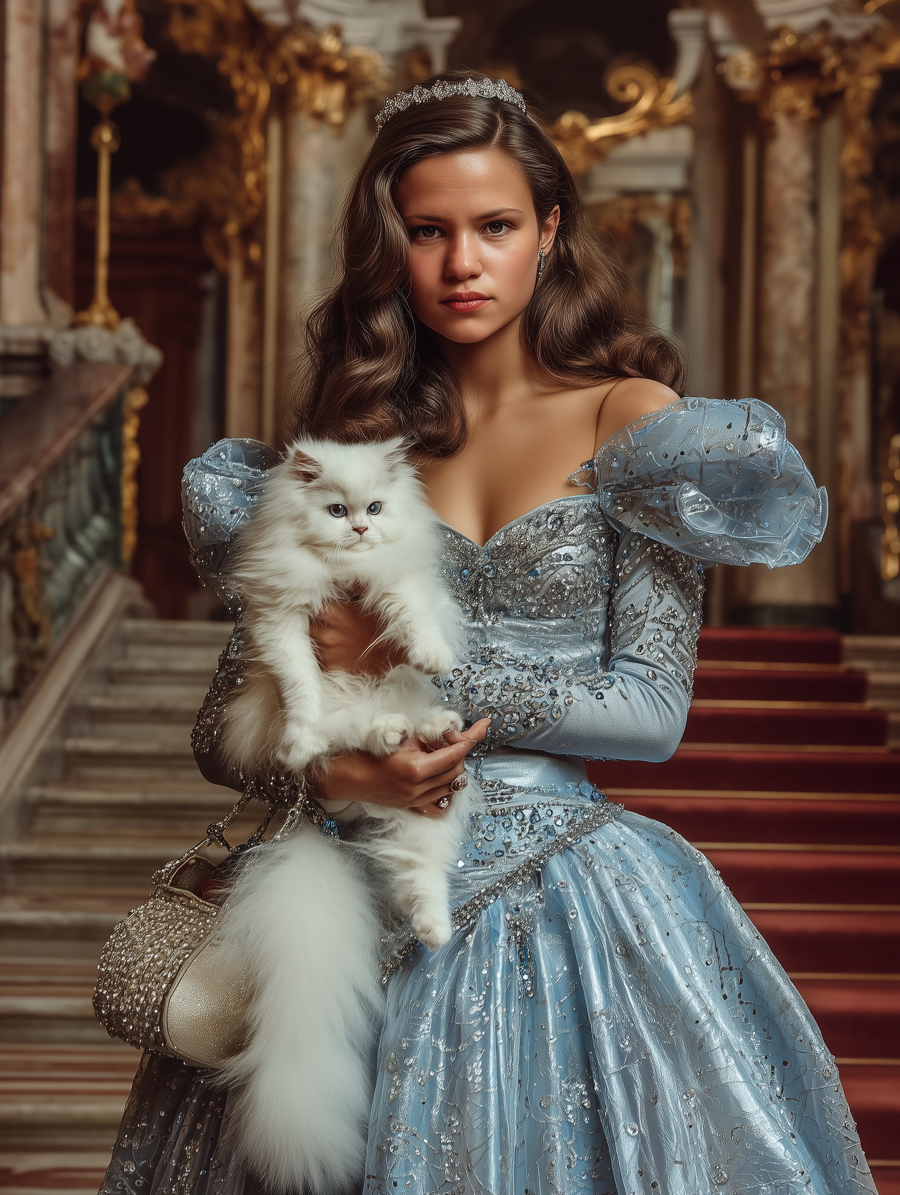 Each prompt is written in rich detail and illustrated with MidJourney imagery, so you can instantly see how the magic comes alive. Expect full-body fashion editorials, couture gowns, dramatic hairstyles, enchanting pets, and cinematic settings — from palace ballrooms to enchanted forests.