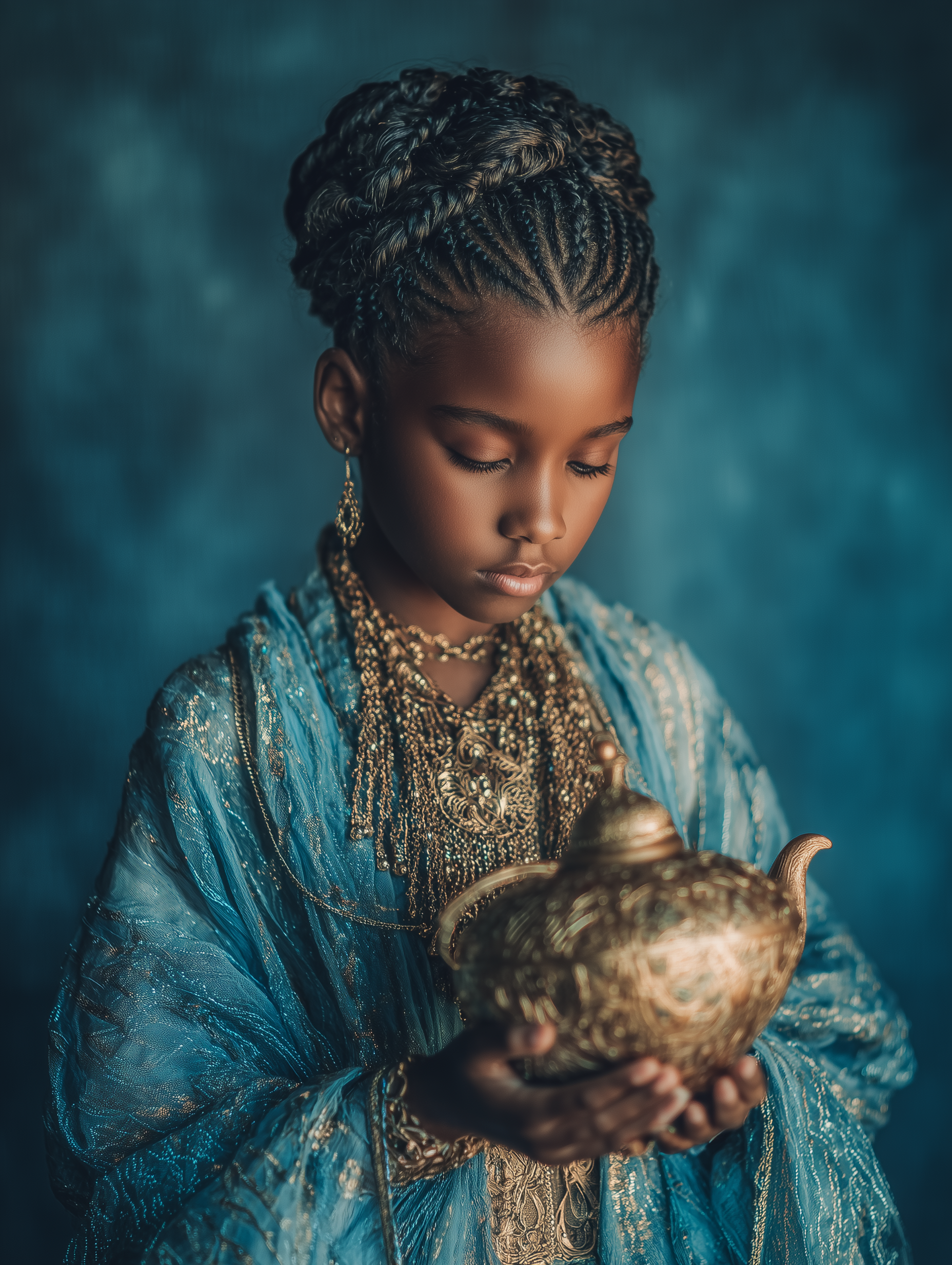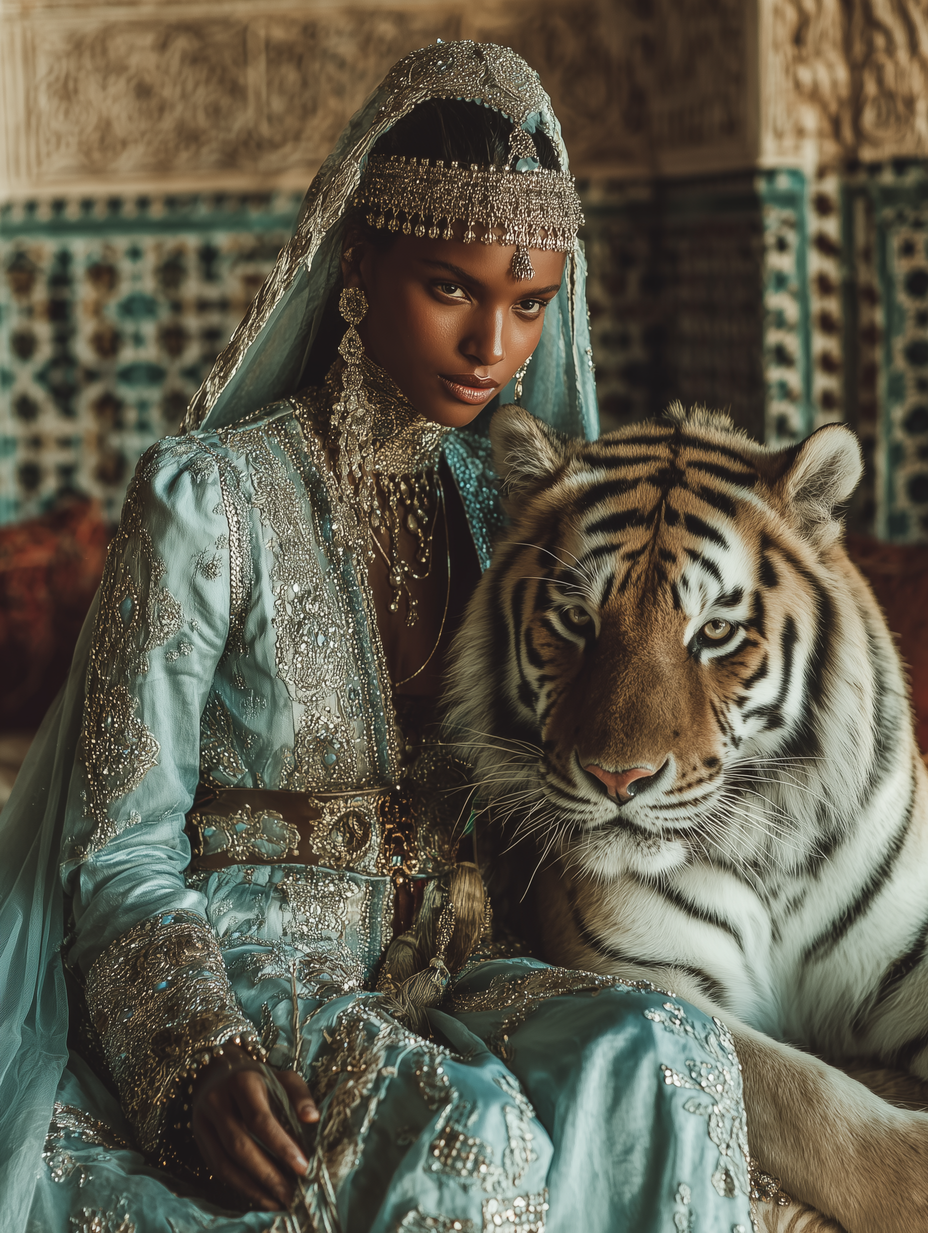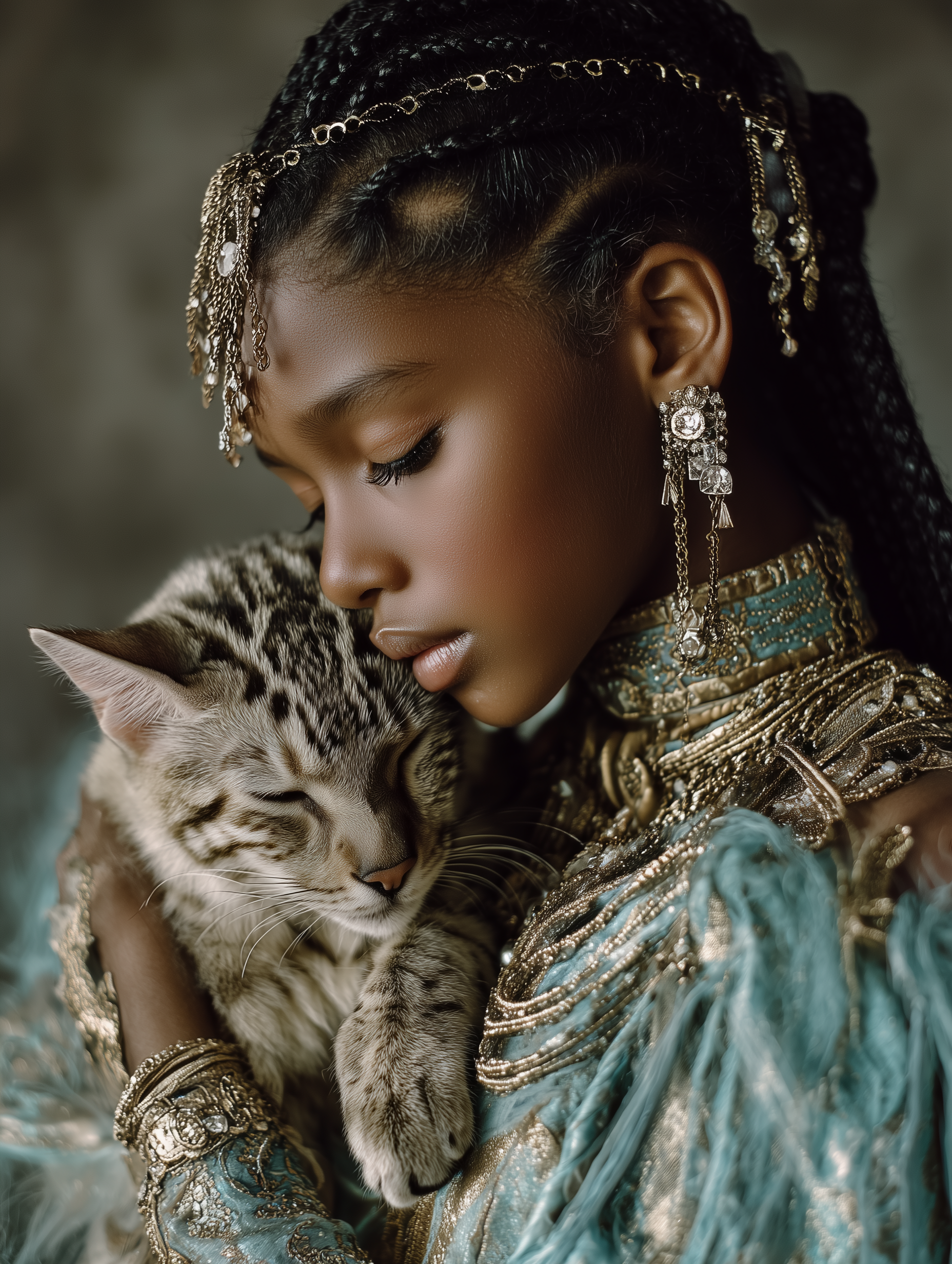 Each prompt is written in rich detail and illustrated with MidJourney imagery, so you can instantly see how the magic comes alive. Expect full-body fashion editorials, couture gowns, dramatic hairstyles, enchanting pets, and cinematic settings — from palace ballrooms to enchanted forests.