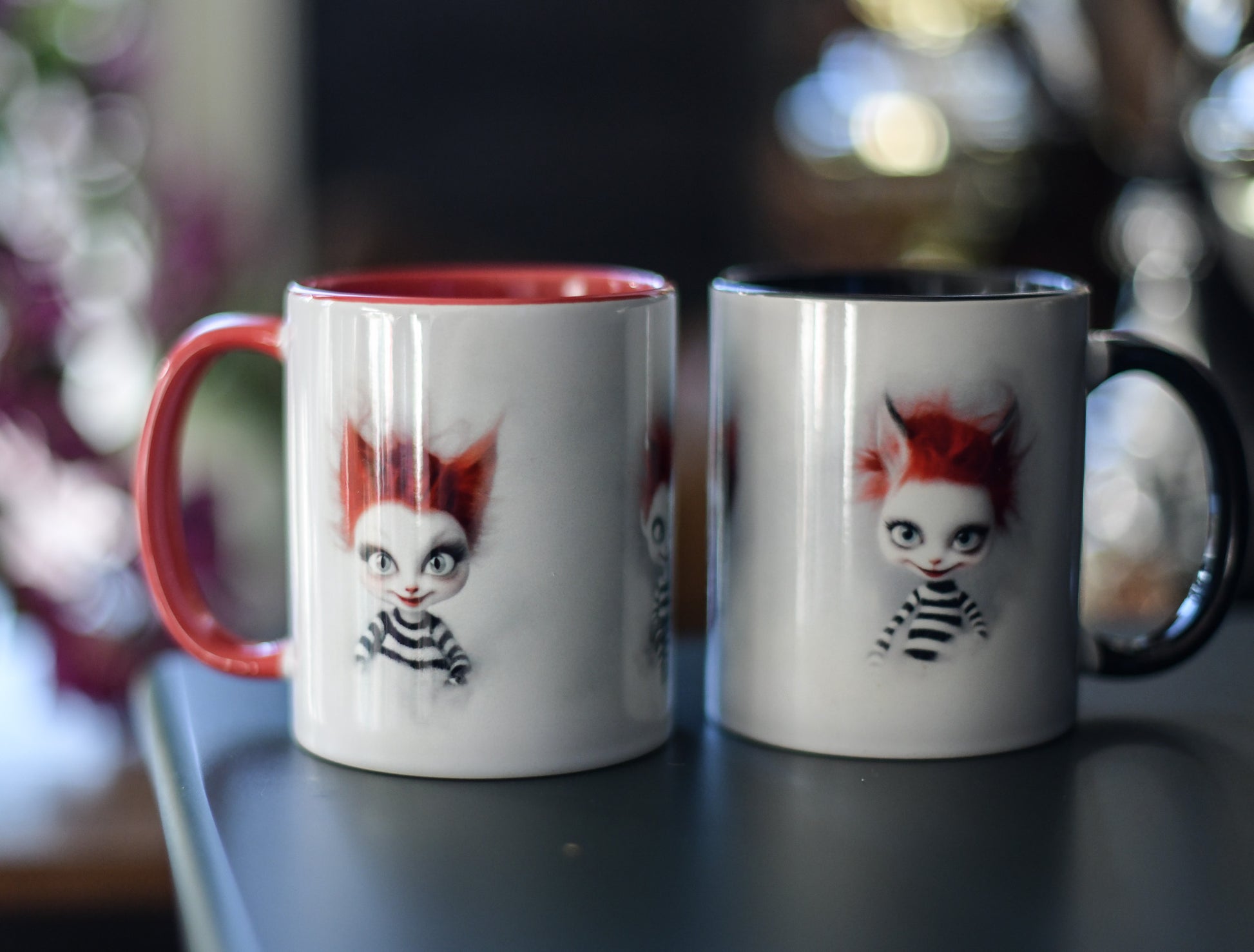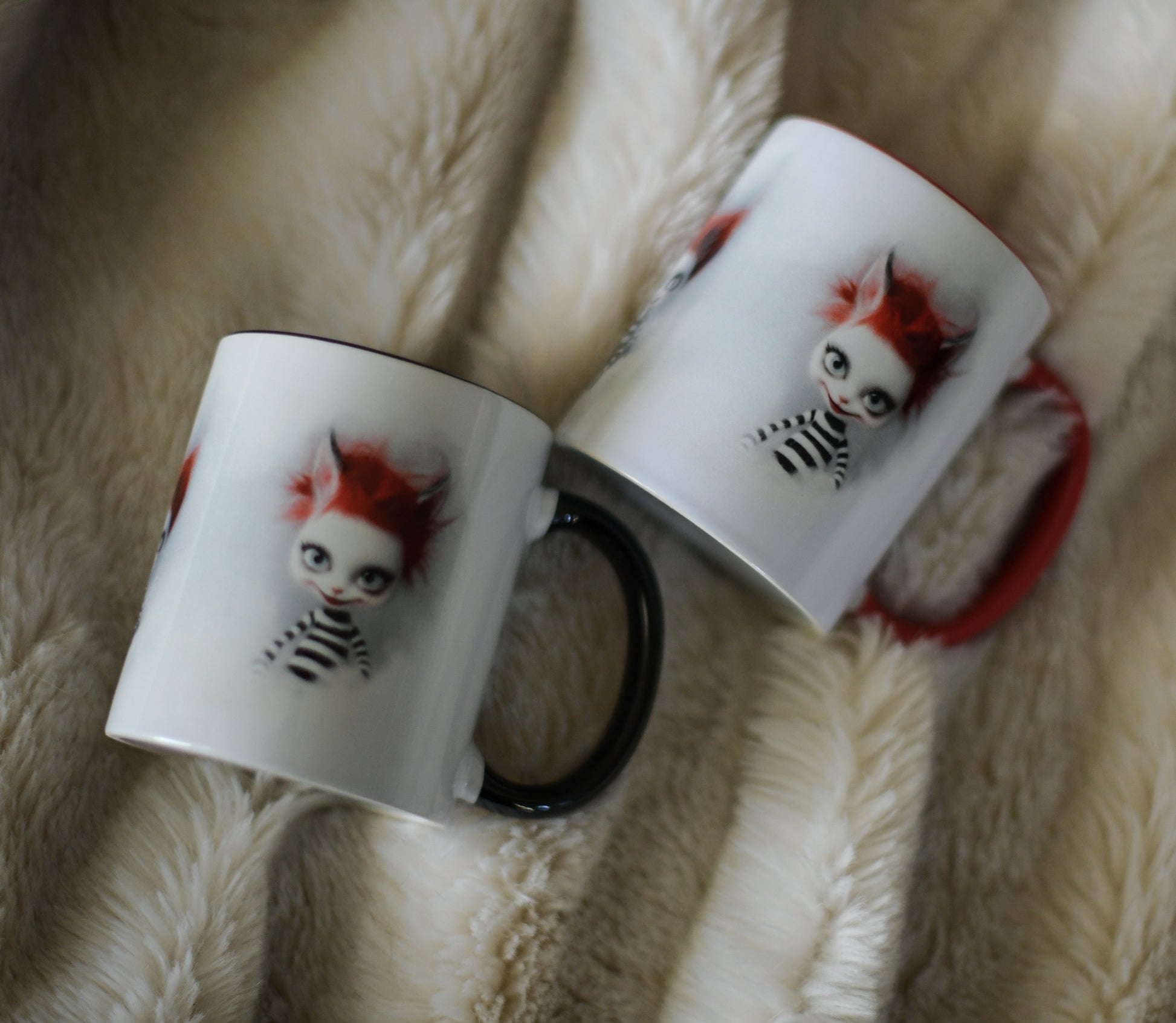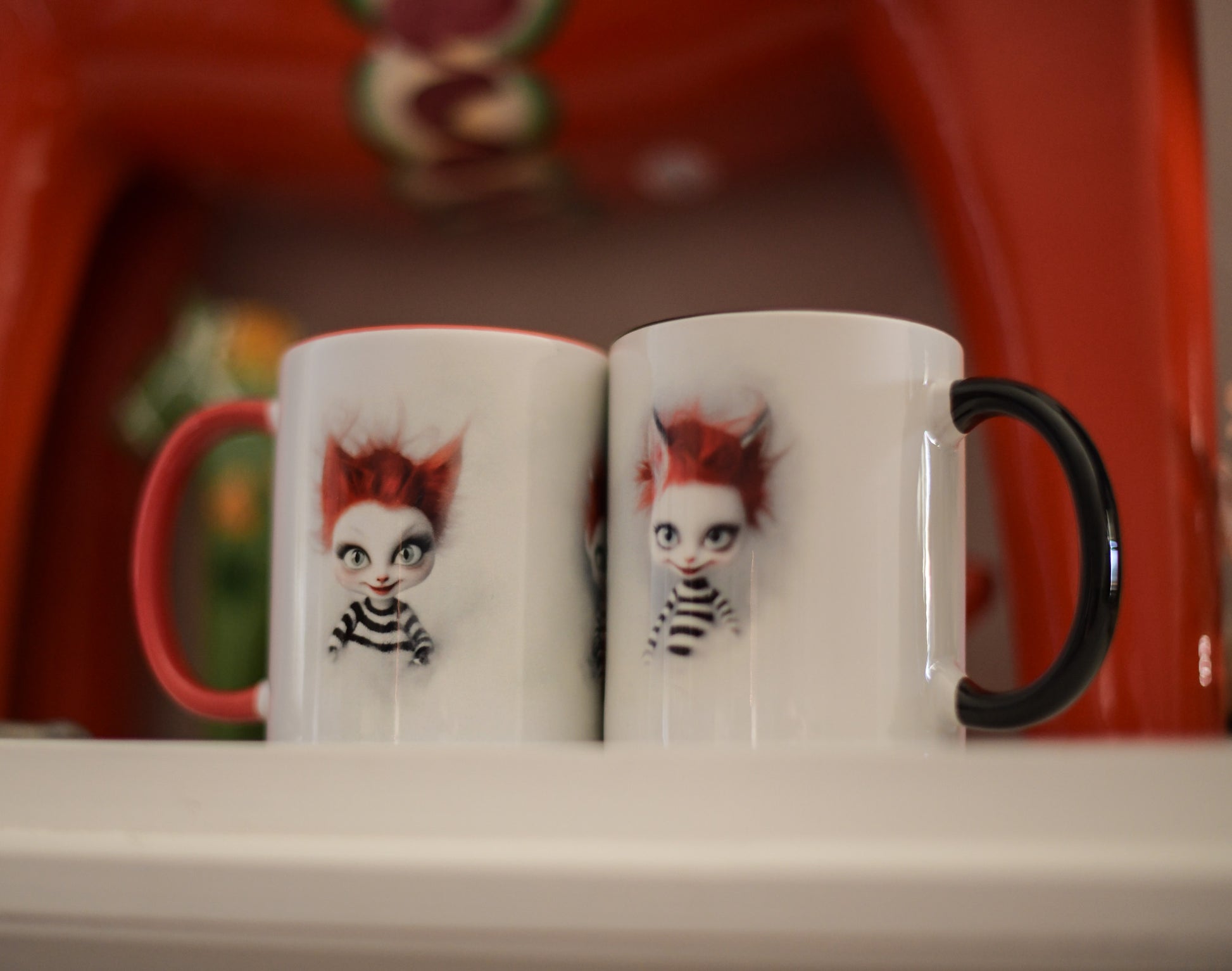 The 3 little red heads are created in AI using my photographic work as base This beautiful ceramic mug is perfect for any event of the day. Your morning coffee, a hot chocolate, or any other hot beverage you enjoy.