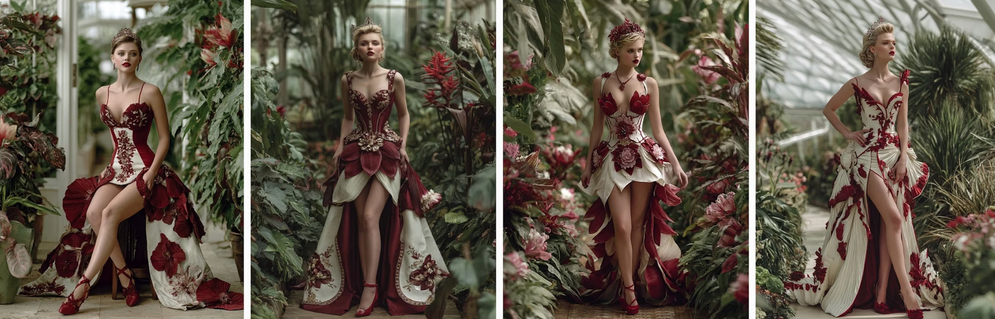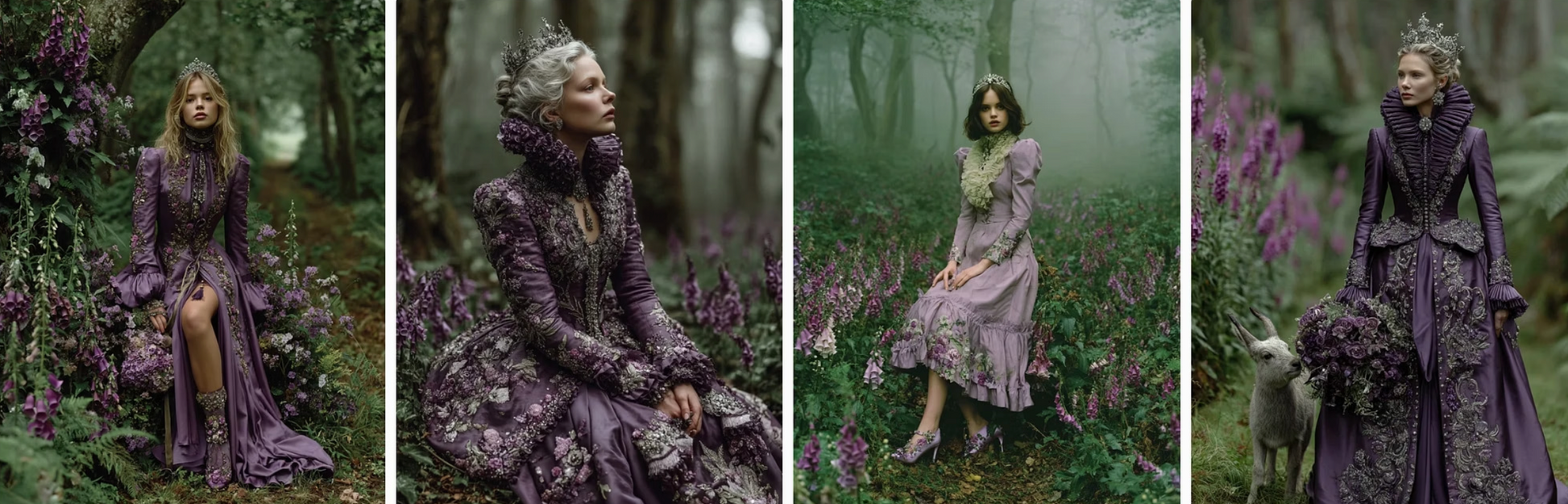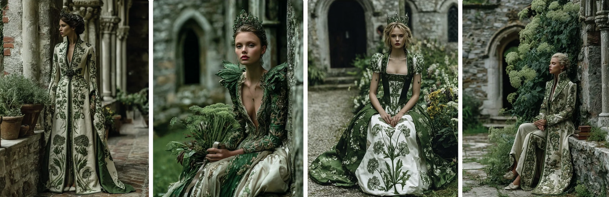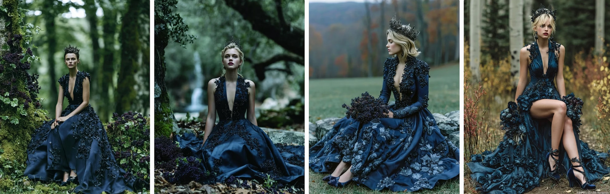 enchanted flowers into haute couture gowns. Flowing velvet nightshade, glittering