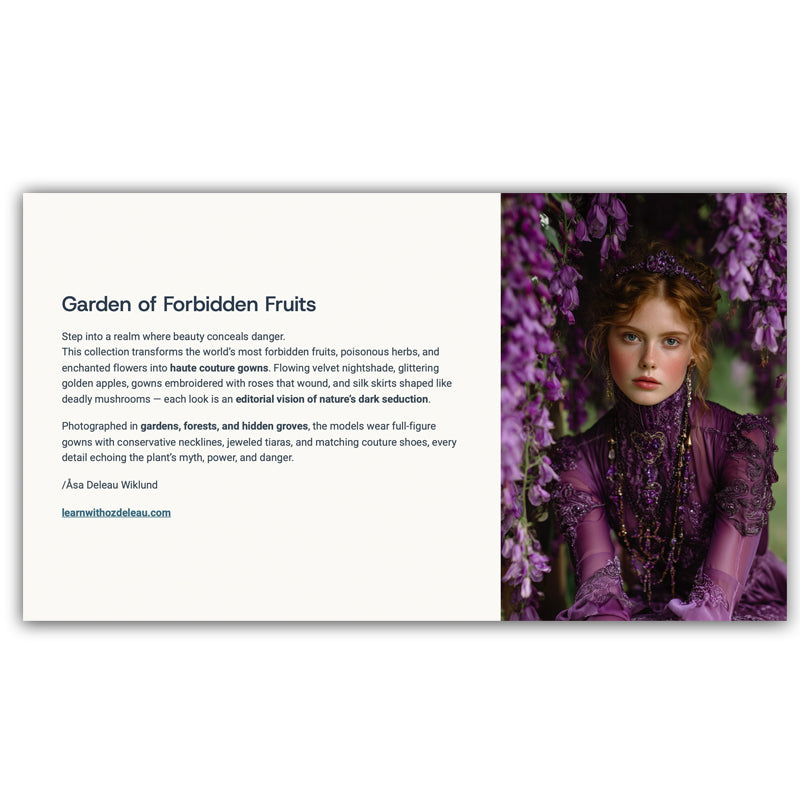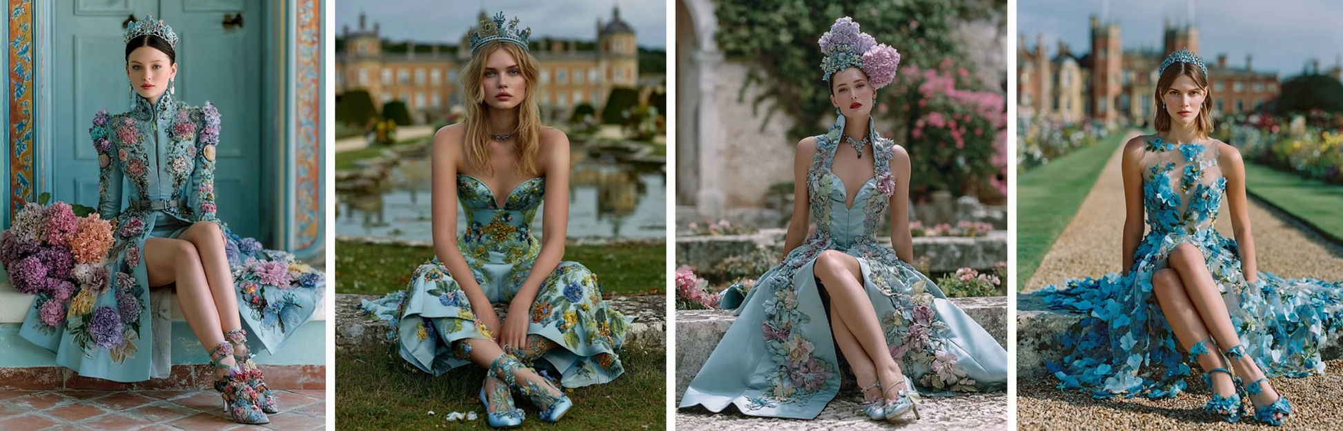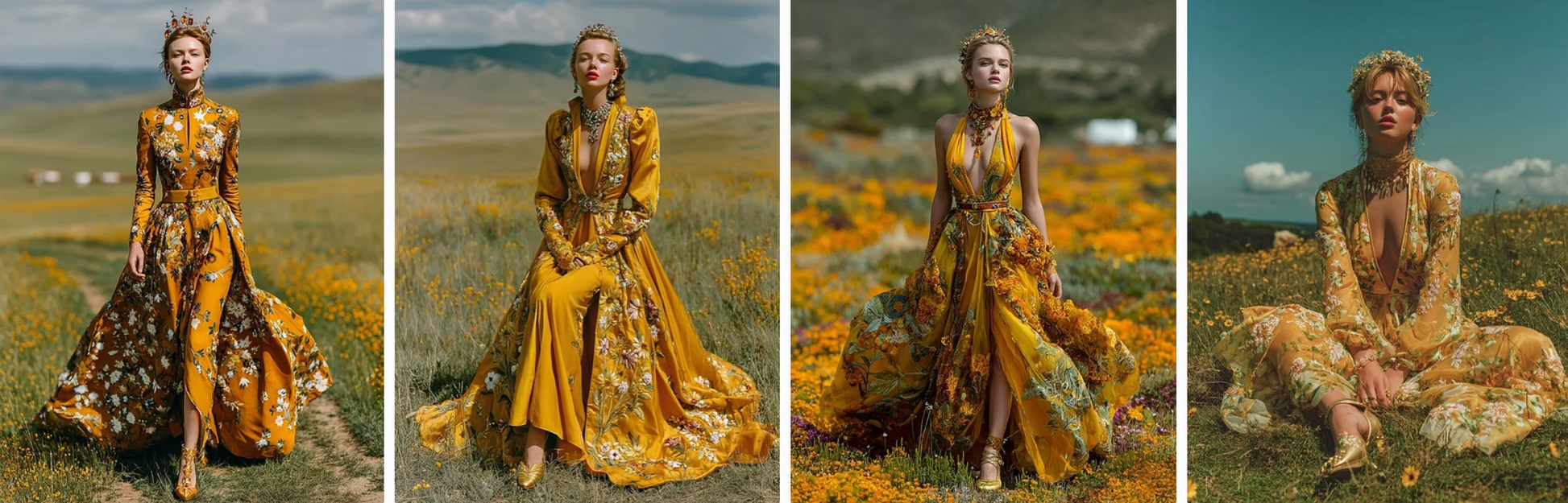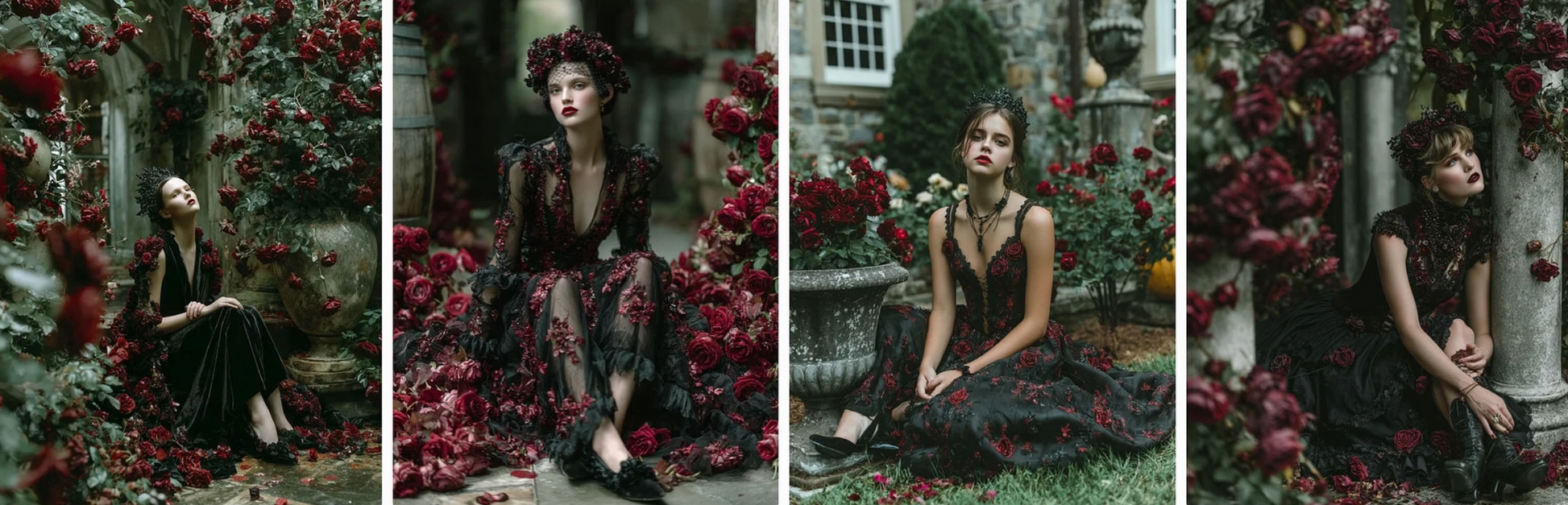 enchanted flowers into haute couture gowns. Flowing velvet nightshade, glittering