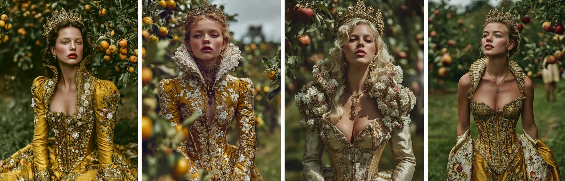 golden apples, gowns embroidered with roses that wound, and silk skirts shaped like