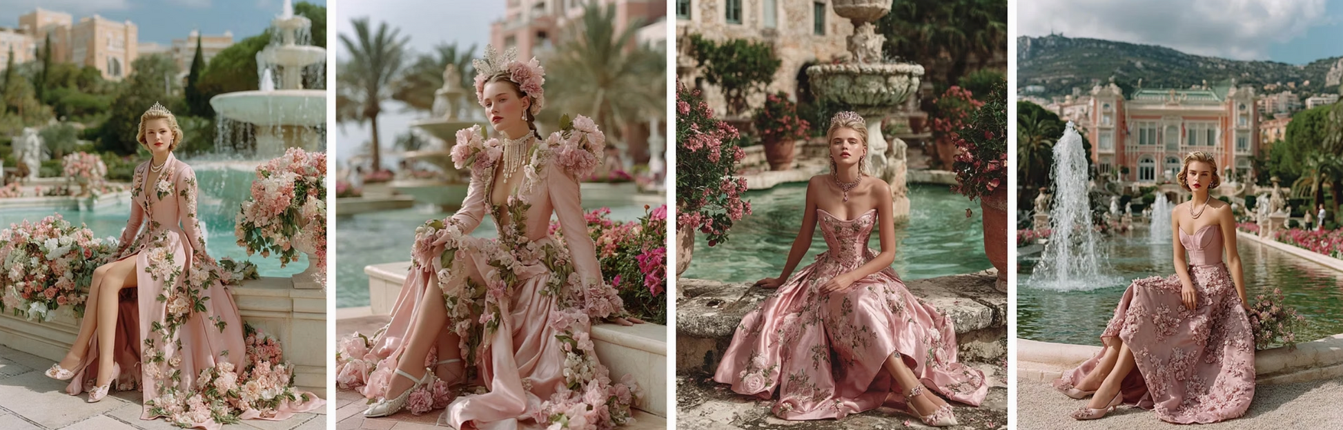 gowns with conservative necklines, jeweled tiaras, and matching couture shoes, every