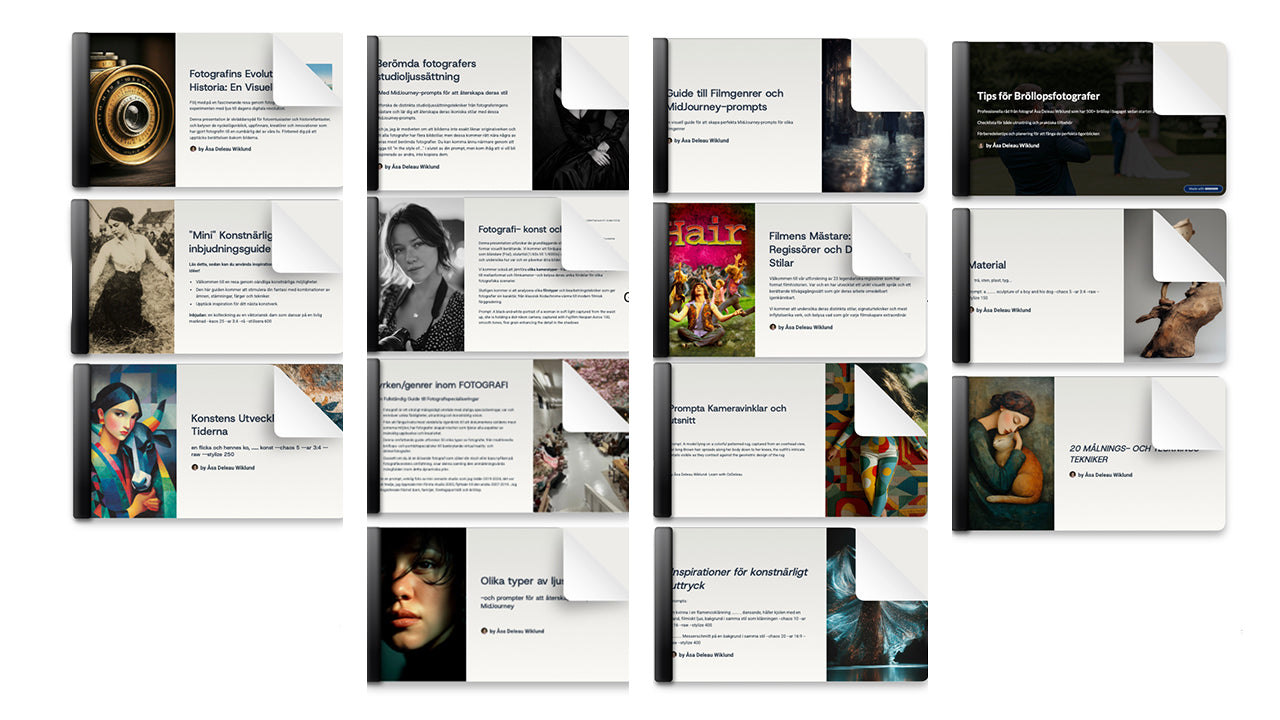 Helt enkelt allt du behöver för att lära dig skapa bilder med AI och hitta din egna stil! Se längre ner på sidan för tips på hur du kan tjäna pengar på dina nya kunskaper.