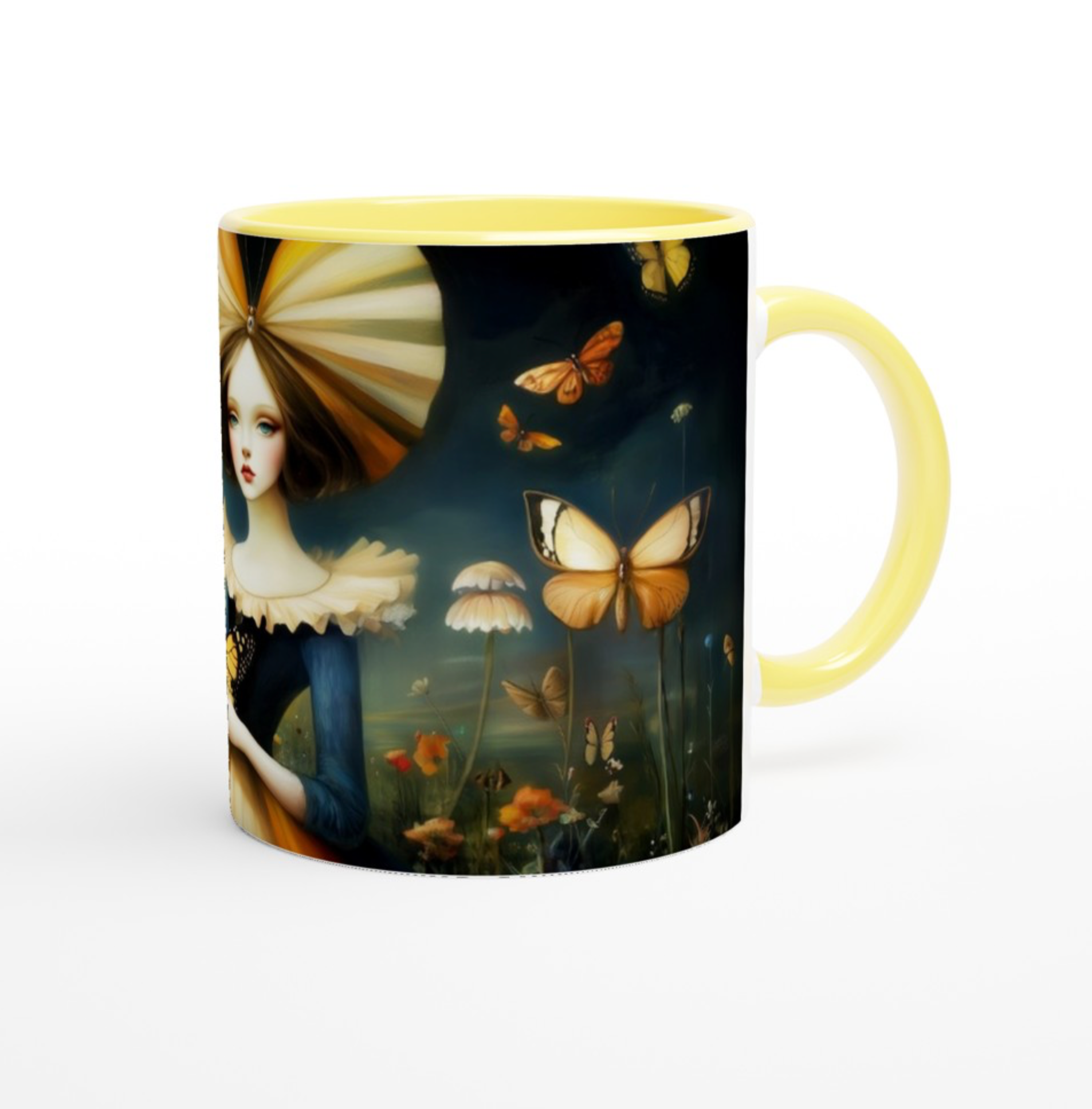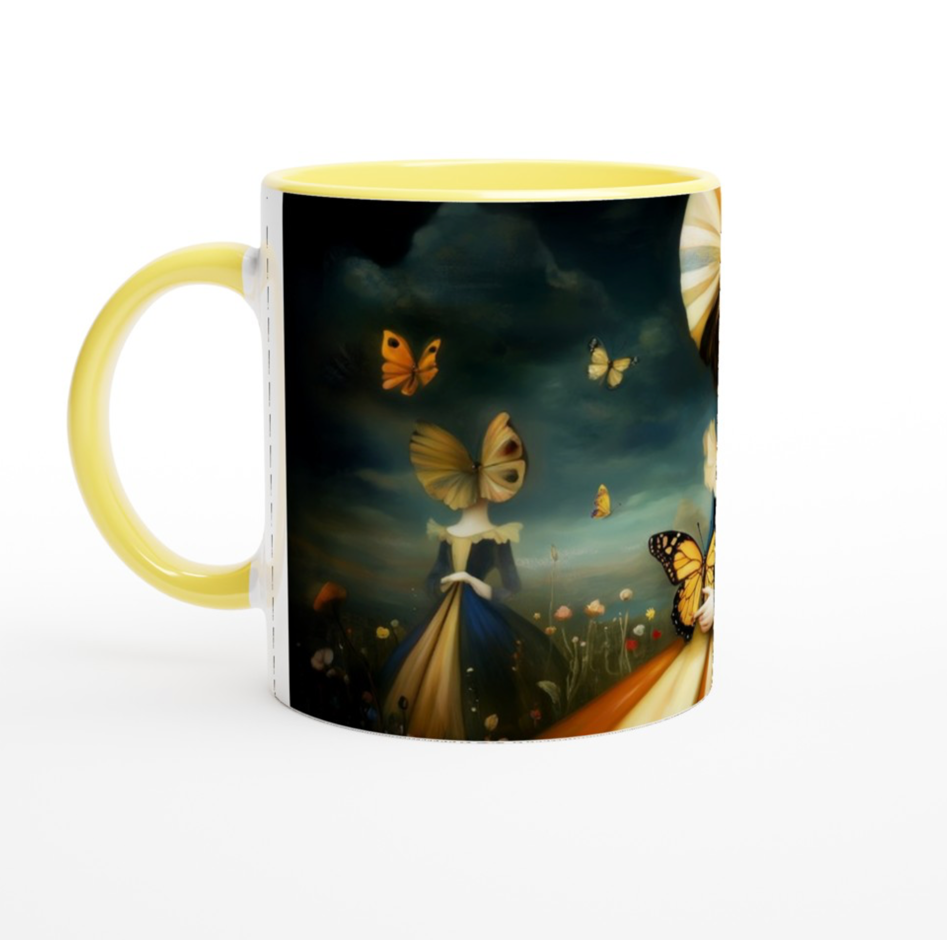 The print retains its quality and luster when used in both microwaves and the dishwasher. - Ceramic 11oz mug - Dishwasher and microwave safe - Colored rim, inside, and handle